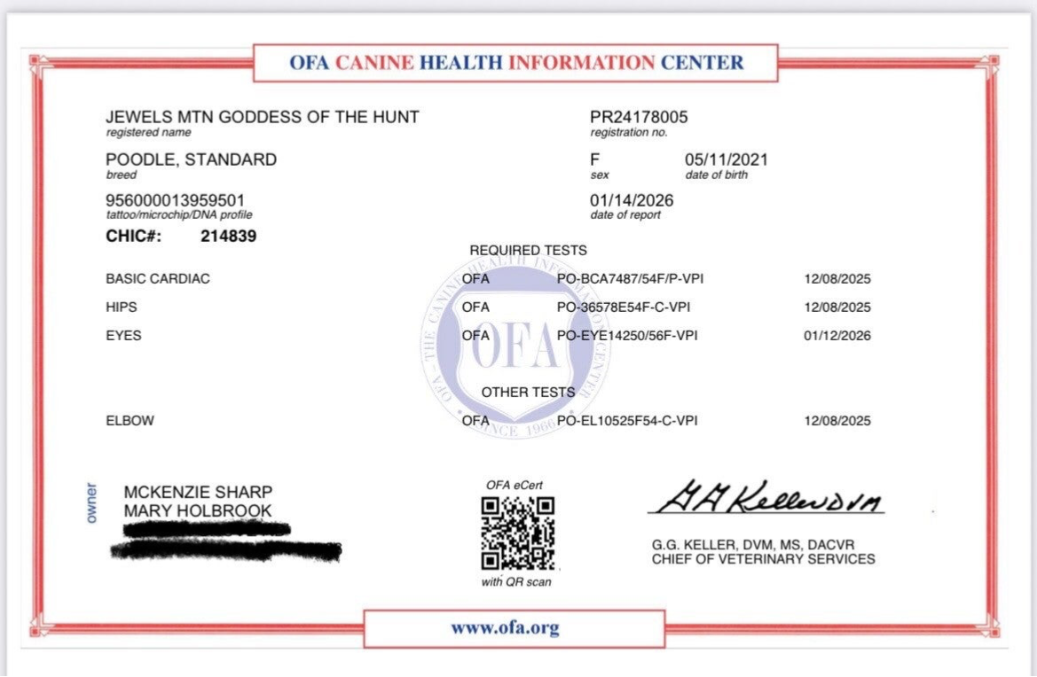 Health Testing Certificates